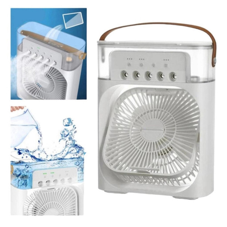 پنکه مه پاش رومیزی مدل Air Cooler Fan فاقد باتری است و به صورت مستقیم توسط آداپتور و کابل USB Type C به برق متصل میشود. دارای پنج نازل مه پاش قوی و قابلیت تنظیم تعداد مه پاش ها است. دارای تایمر جهت خاموشی خودکار می باشد. فن دستگاه قابلیت تنظیم دستی و چرخش ۳۶۰ درجه در یک جهت را دارد و محافظ فن دارای قابلیت باز و بسته شدن جهت نظافت پره ها میباشد. ترجیحا از آب تصفیه شده درون دستگاه استفاده شود جهت جلوگیری از رسوب.